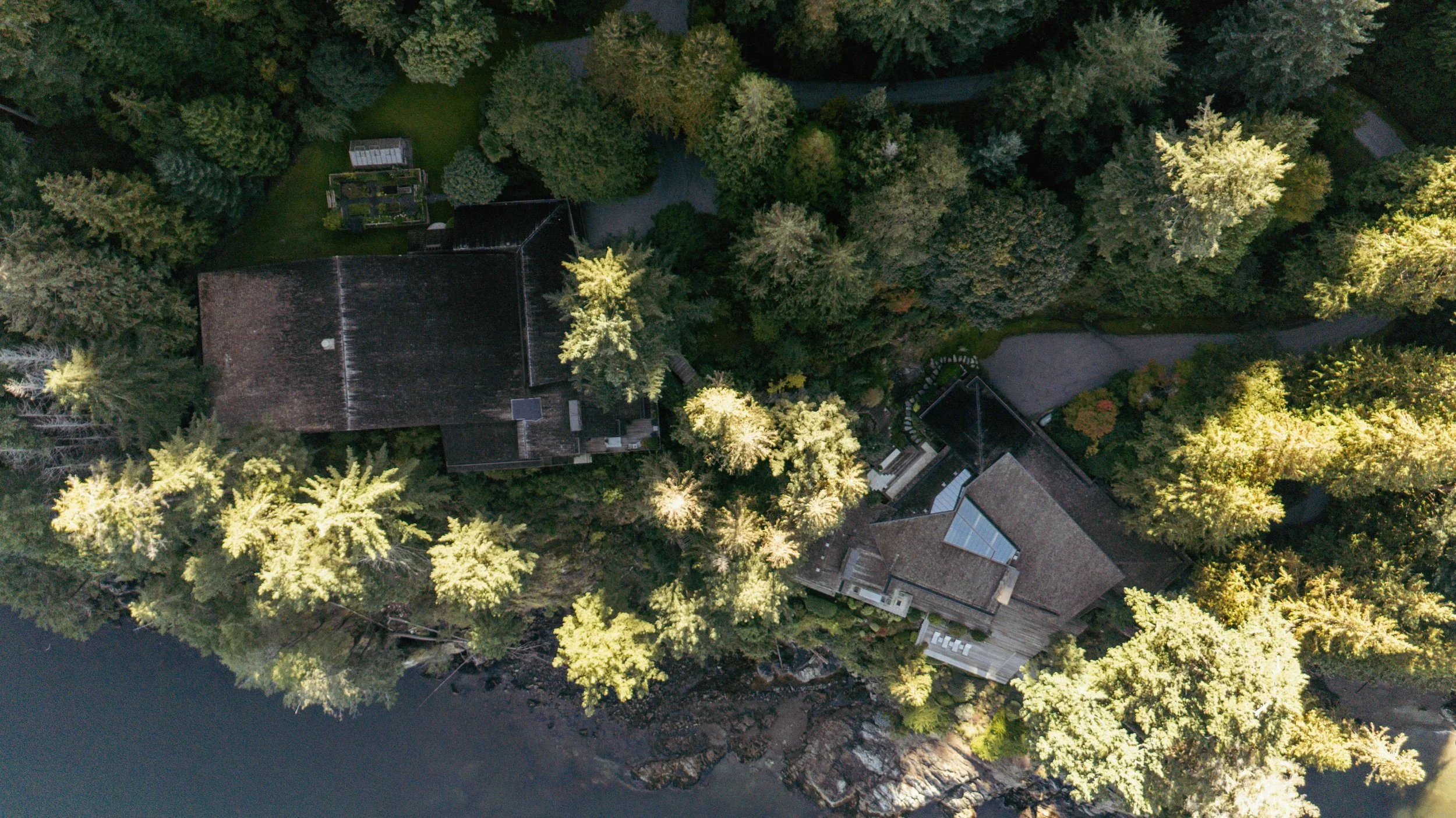 Set on more than 23 acres with nearly 1/2 kilometre of private shoreline, the Morse House is a rarity of size and privacy. The architecture opens to sweeping ocean and mountain views, yet always feels intimate. Arriving — whether by boat or floatplane — is cinematic; the house reveals itself gradually, unfolding across the shoreline like a private world. Designed for gathering at scale, the residence offers expansive indoor–outdoor living spaces for hosting, from summer parties on the decks to fireside winter evenings watching storms roll in. A Richard Hunt totem pole, raised in 1989, adds a layer of cultural depth. A separate guest house allows friends or extended family to stay close while keeping the main home private and serene.
